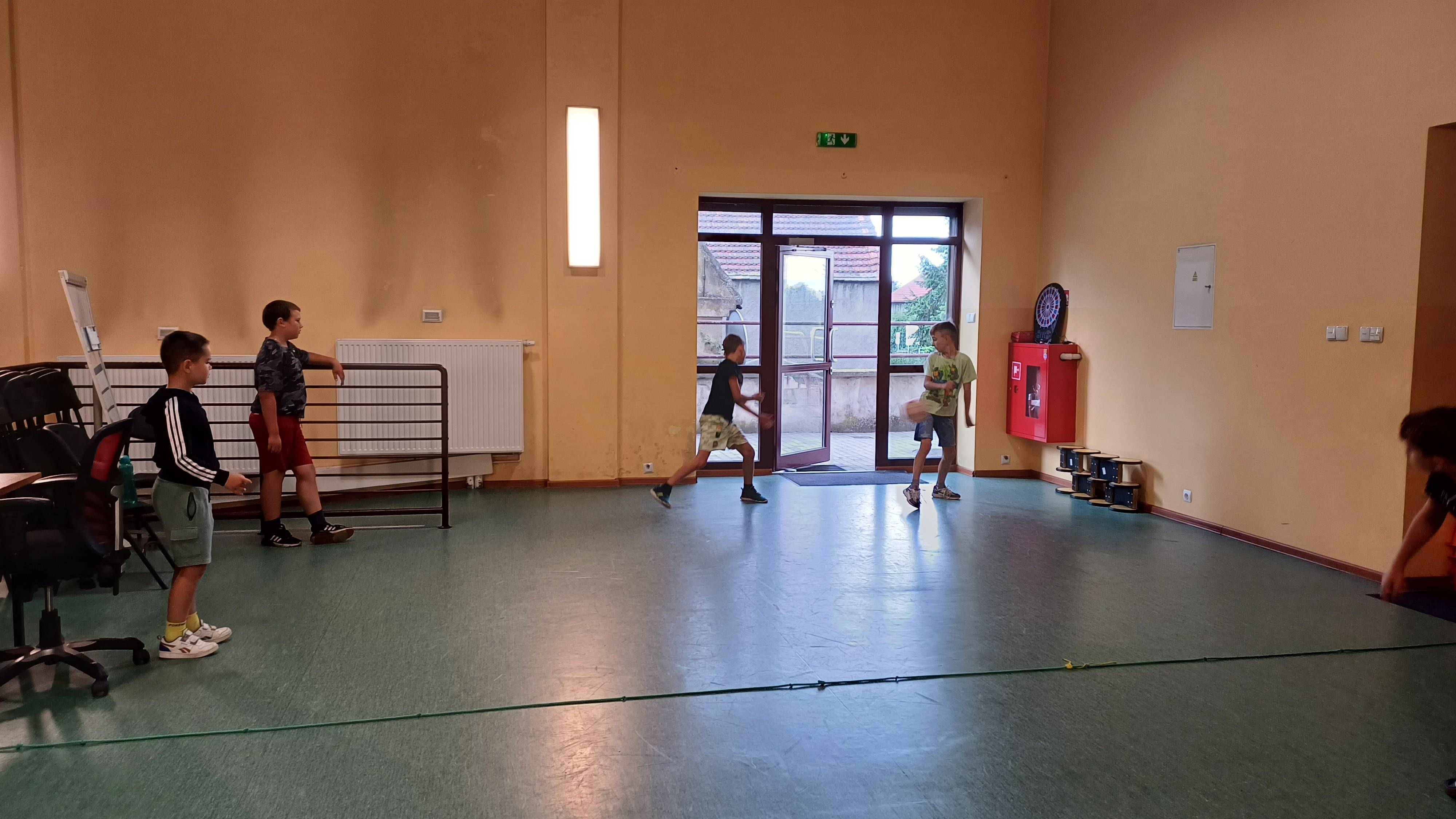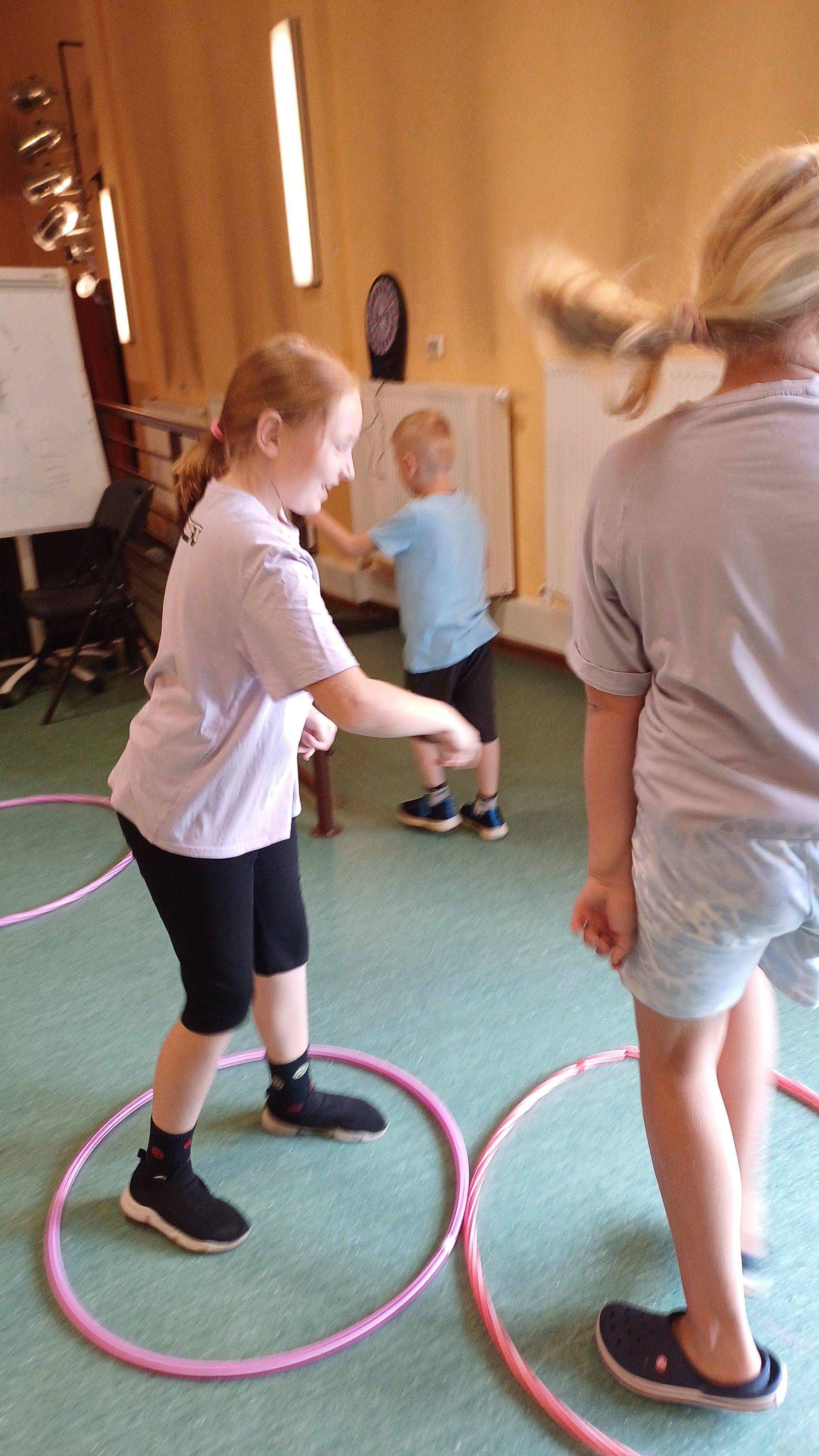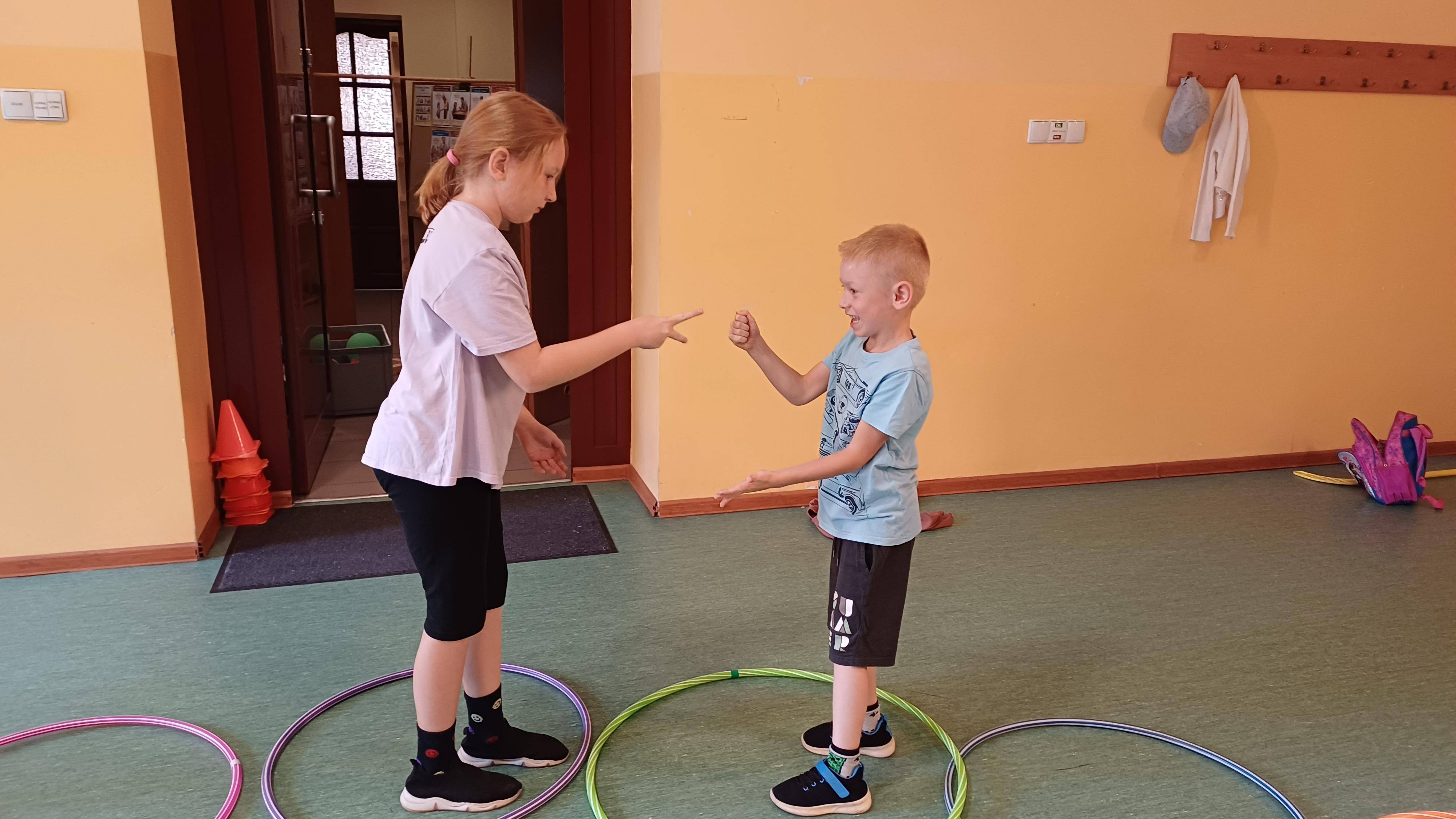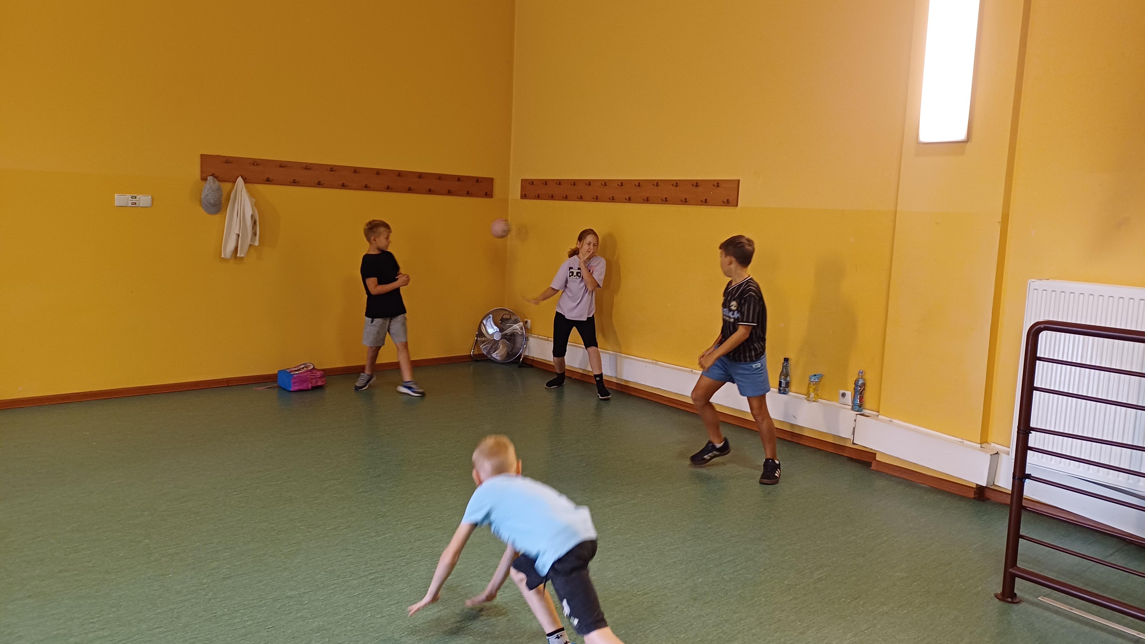 Podczas pełnych energii zajęć ruchowych wzięła udział liczna grupa dzieci w wieku od 5 do 11 lat. Starsi uczestnicy rywalizowali w takich grach jak zbijak czy bilard, natomiast młodsze dzieci świetnie bawiły się przy gorących krzesłach. Kulminacyjnym punktem zajęć była wspólna gra w chowanego, która zintegrowała wszystkie dzieci i dostarczyła mnóstwo radości – tym bardziej, że do dyspozycji miały cały parter budynku. Atmosfera była radosna, a dzieci chętnie angażowały się w każdą aktywność.