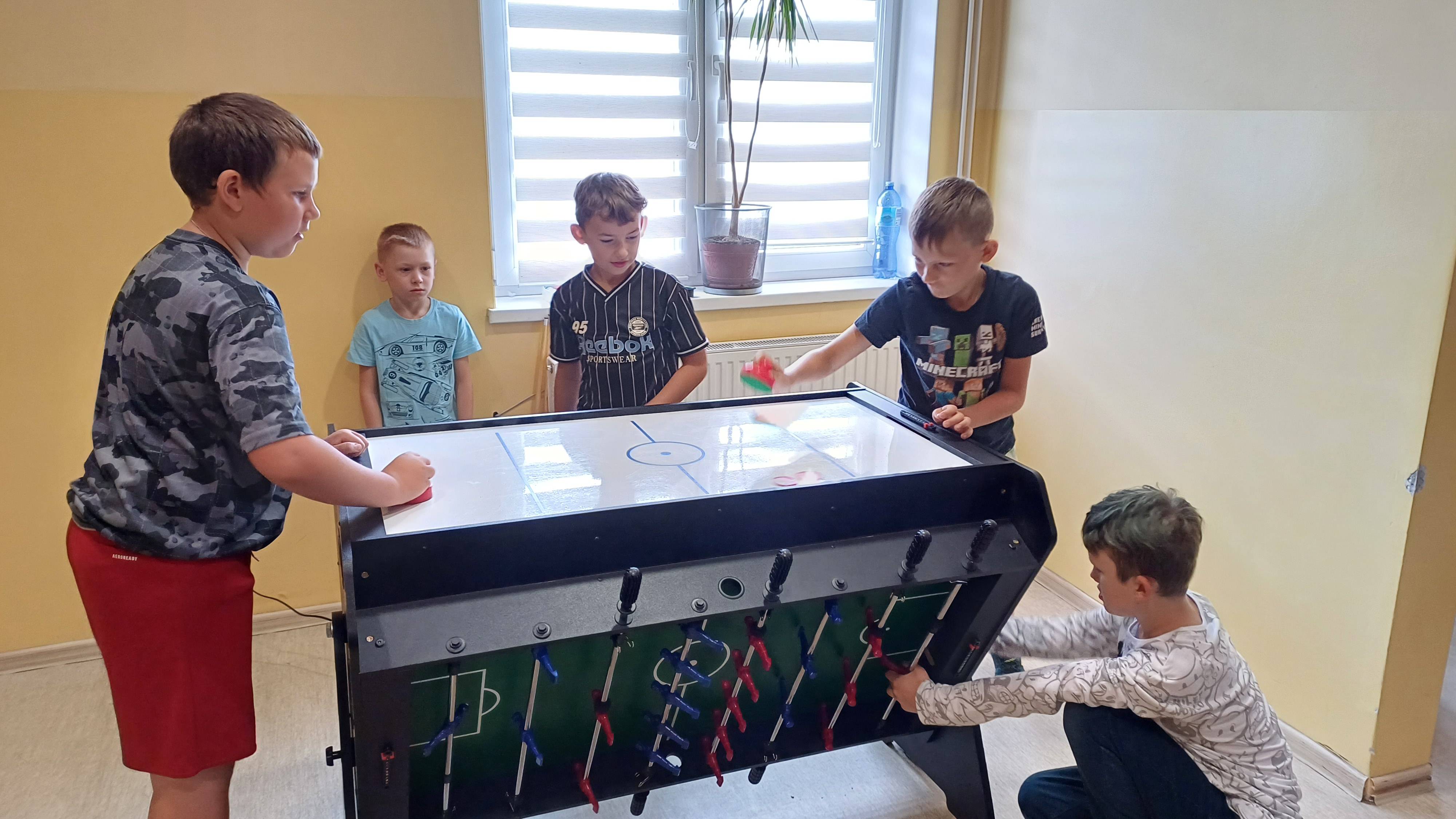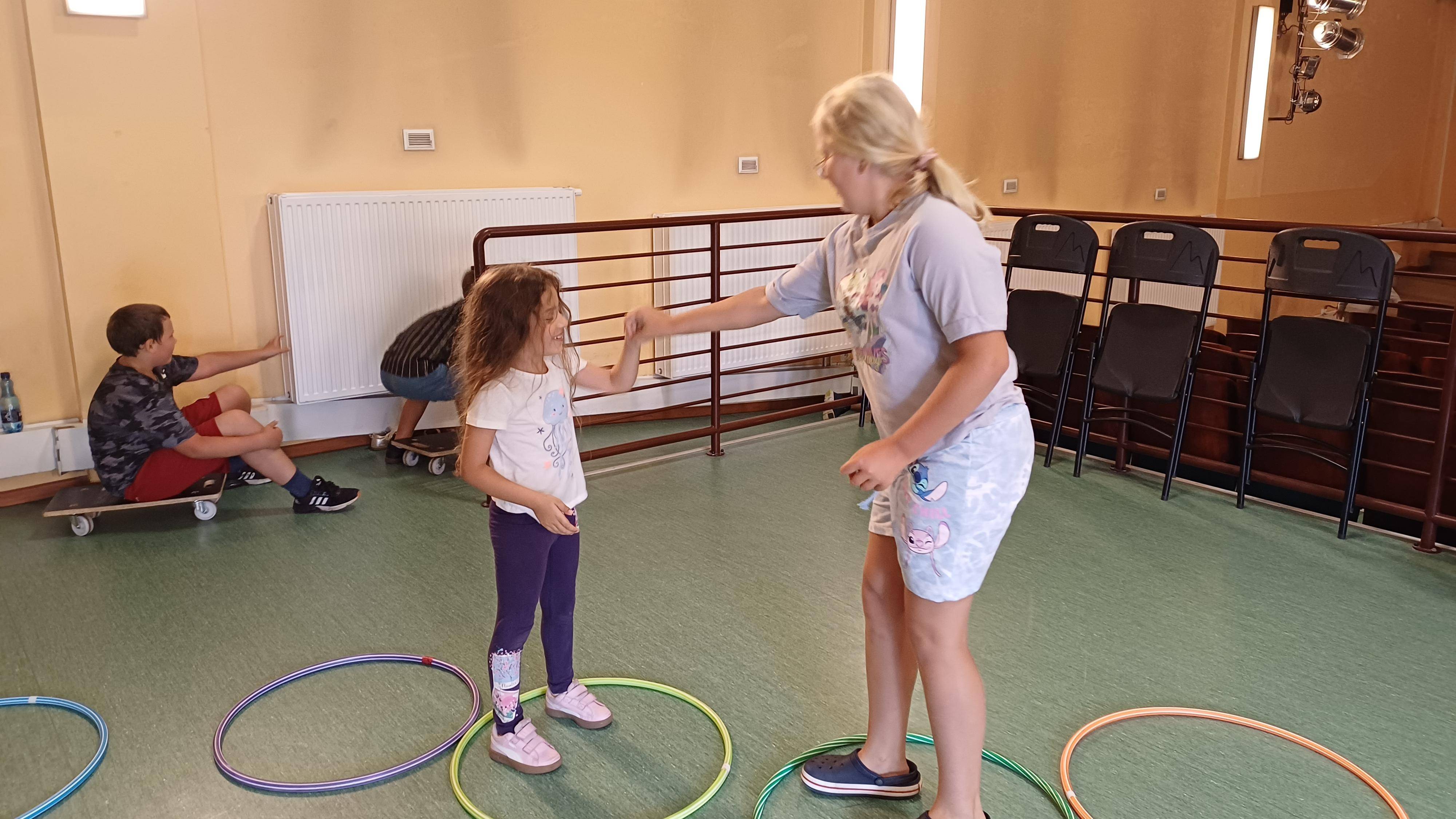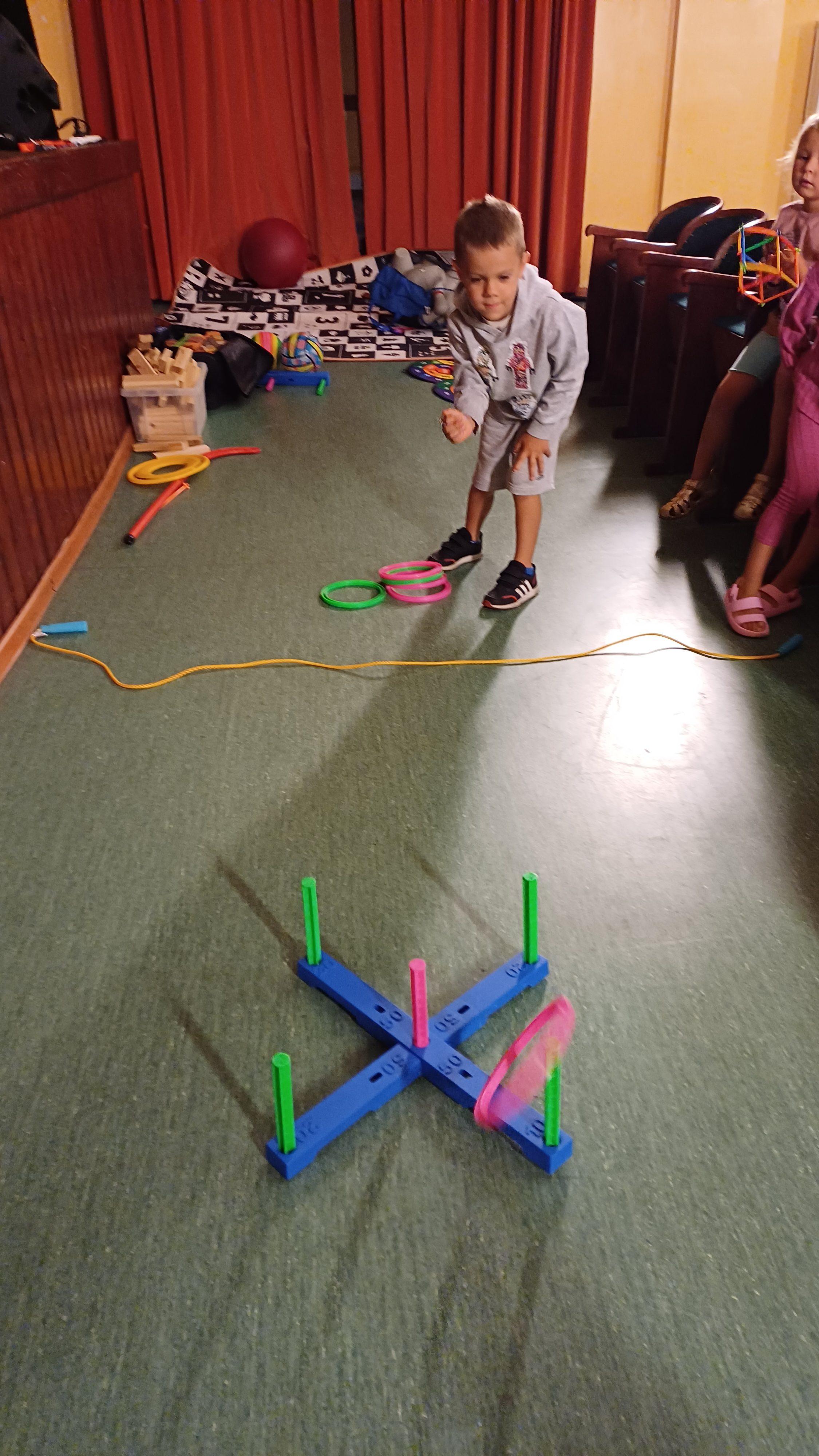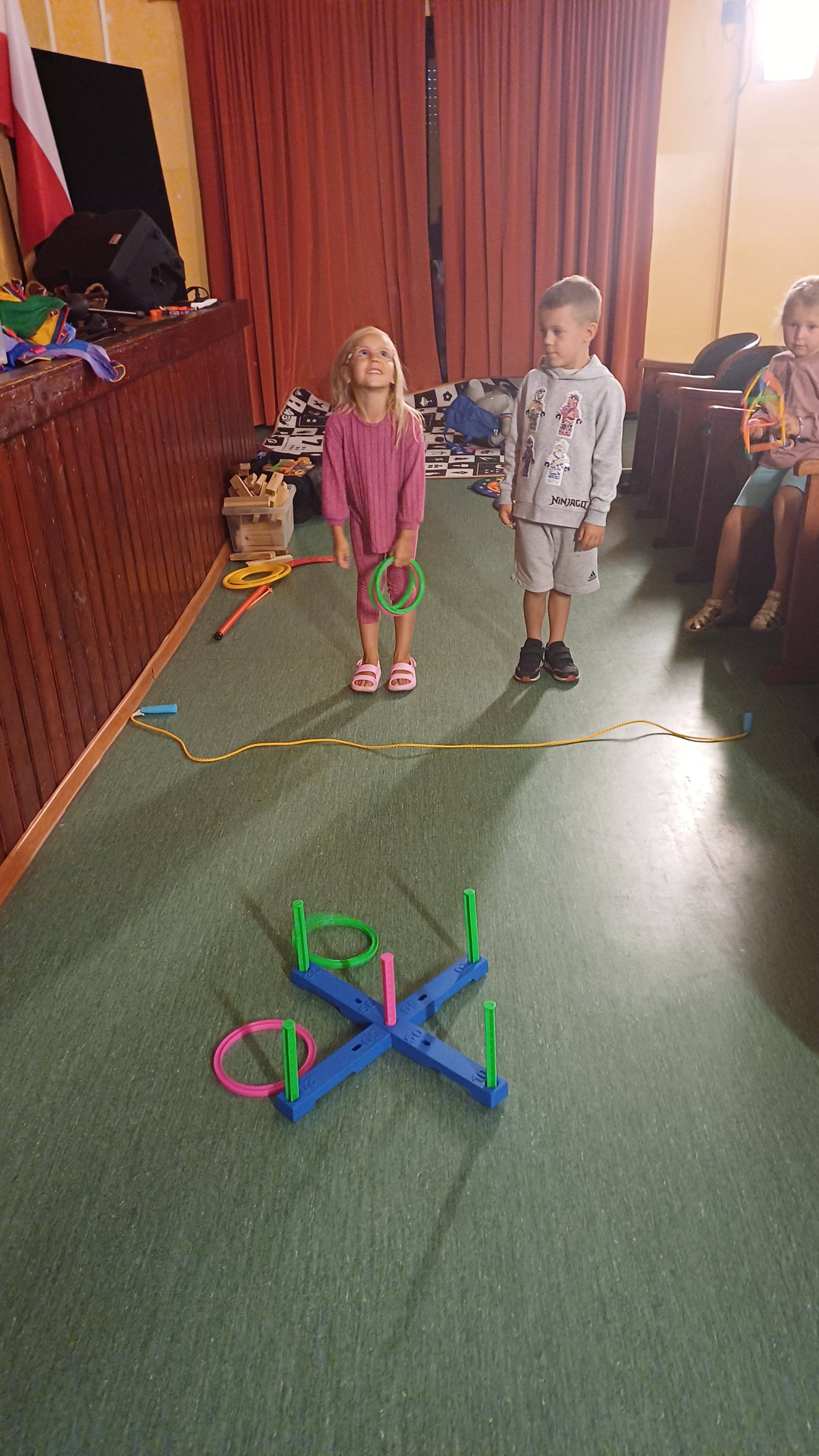 Podczas pełnych energii zajęć ruchowych wzięła udział liczna grupa dzieci w wieku od 5 do 11 lat. Starsi uczestnicy rywalizowali w takich grach jak zbijak czy bilard, natomiast młodsze dzieci świetnie bawiły się przy gorących krzesłach. Kulminacyjnym punktem zajęć była wspólna gra w chowanego, która zintegrowała wszystkie dzieci i dostarczyła mnóstwo radości – tym bardziej, że do dyspozycji miały cały parter budynku. Atmosfera była radosna, a dzieci chętnie angażowały się w każdą aktywność.