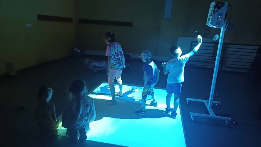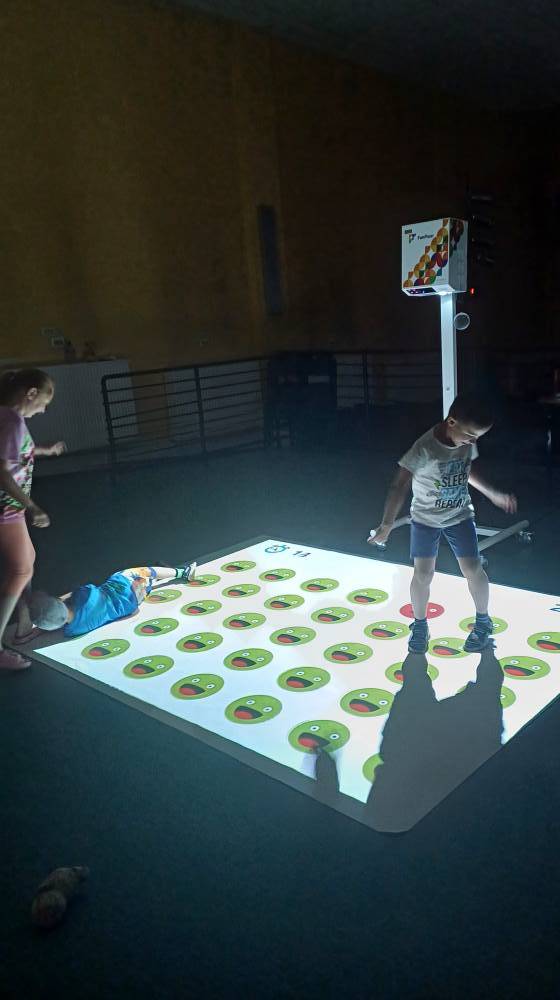 W ramach wakacyjnych atrakcji odbył się dziś seans filmowy, podczas którego dzieci z ogromnym zainteresowaniem obejrzały animację „Trolle 2”. Kolorowa bajka pełna muzyki i pozytywnych emocji bardzo spodobała się najmłodszym widzom. Po filmie uczestnicy mieli jeszcze czas na wspólną zabawę. Dzieci z radością bawiły się na macie interaktywnej FunFloor, gdzie mogły sprawdzić swoją spostrzegawczość i refleks w kolorowych grach ruchowych. Spotkanie było pełne uśmiechu i dobrej energii.