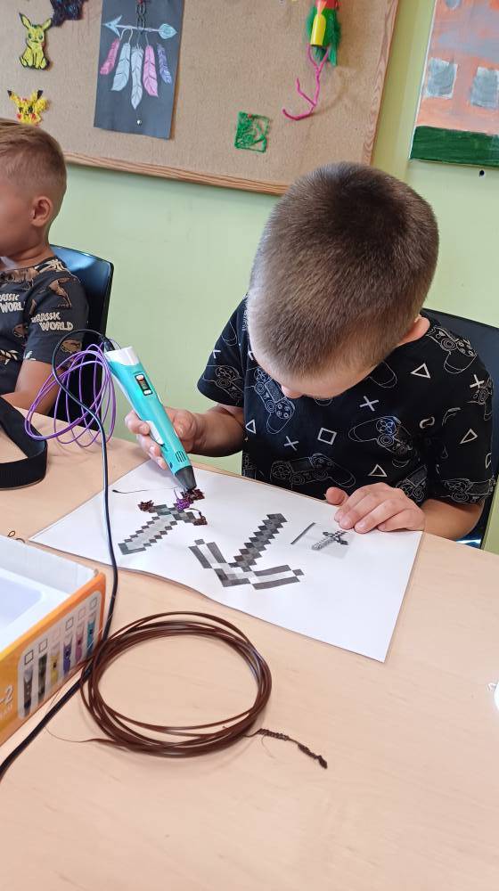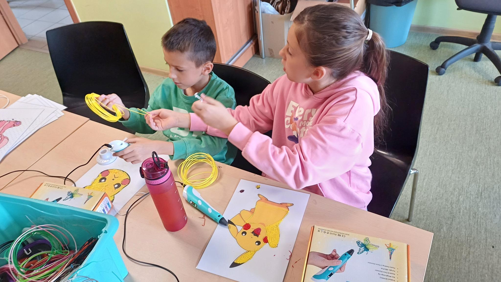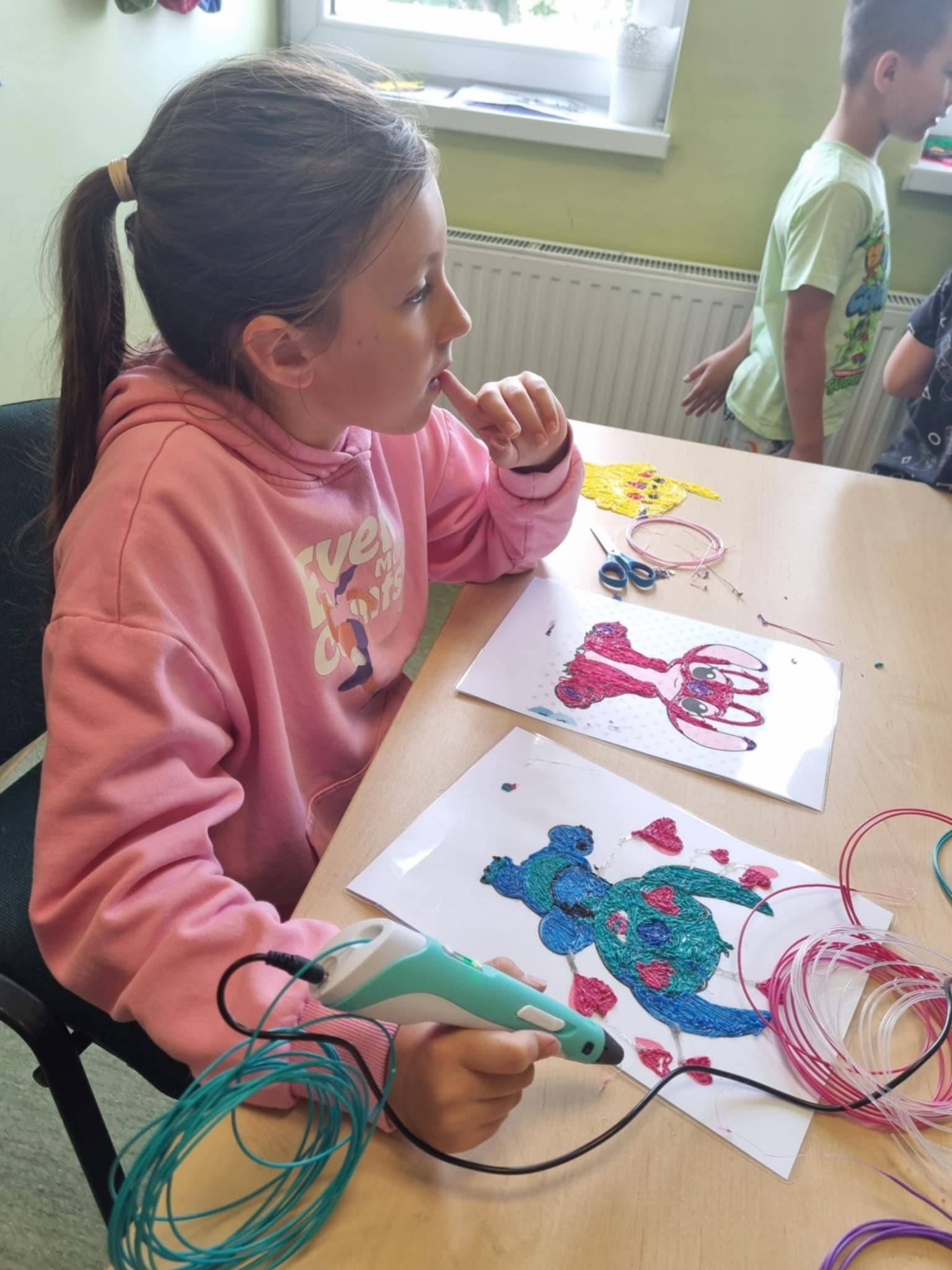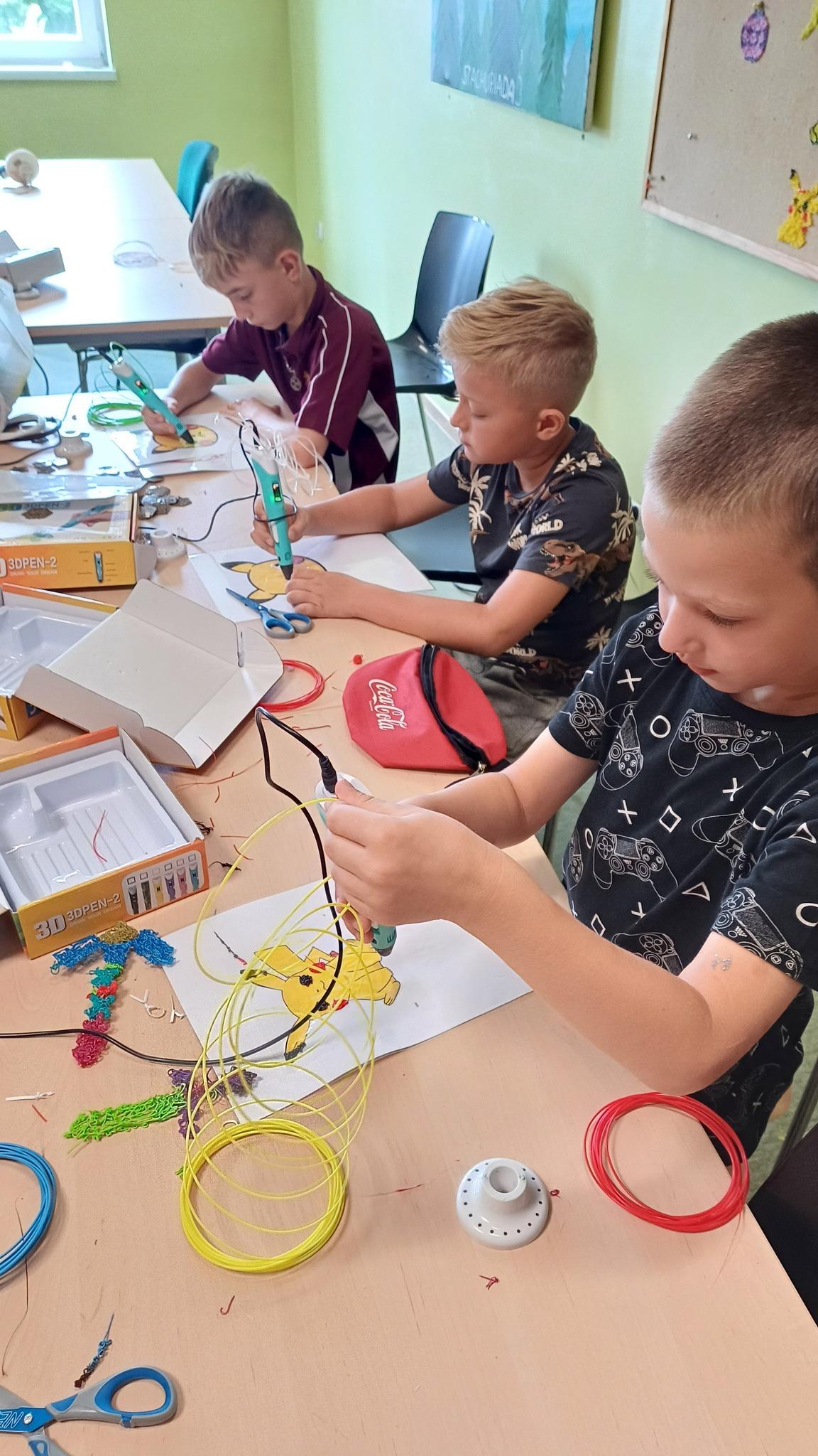 Dzieci odkrywały możliwości długopisów 3D, tworząc niezwykłe figurki i dekoracje.