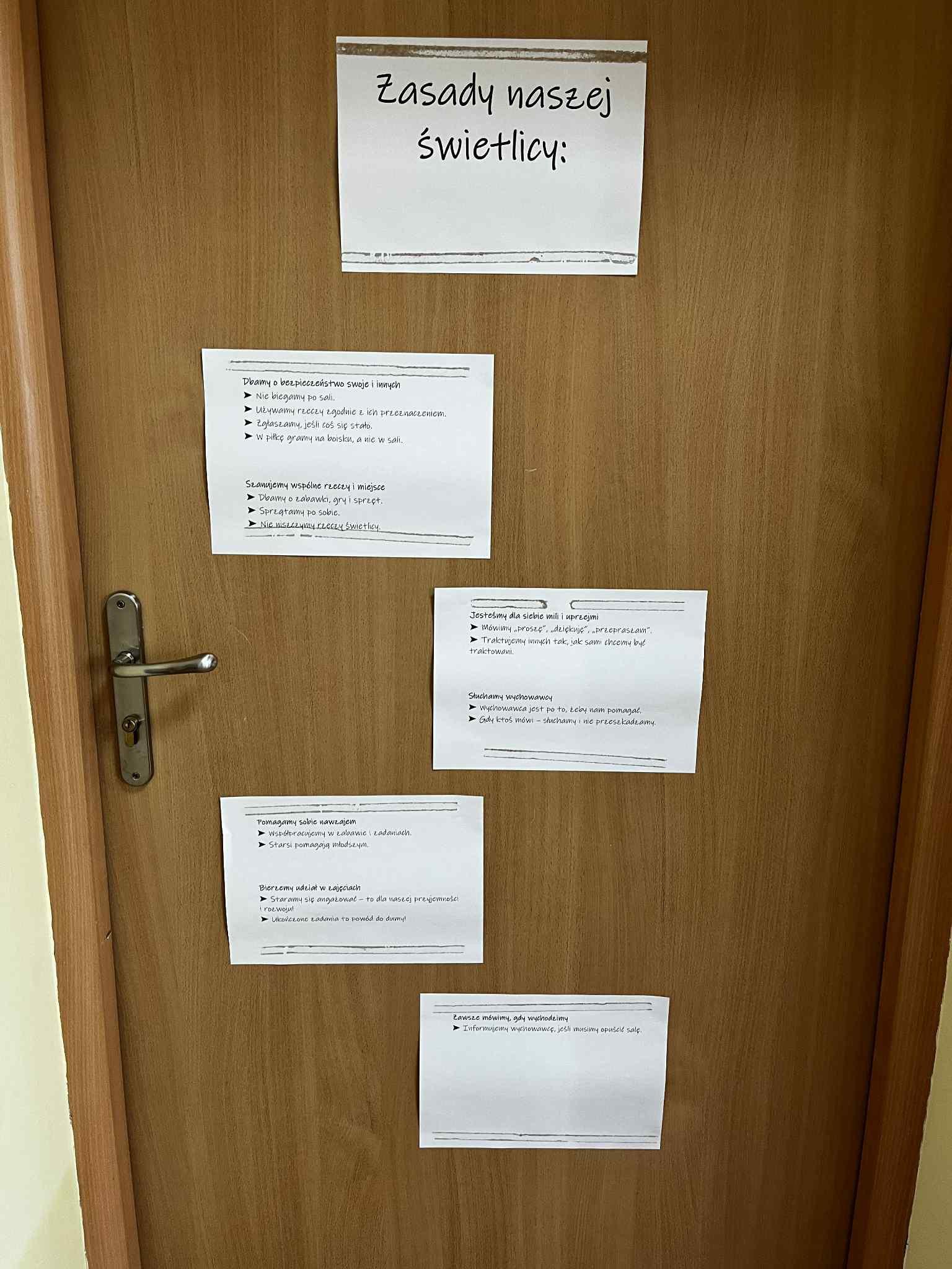 Podczas spotkań uczestnicy biorą udział w grach i zabawach integracyjnych, które sprzyjają budowaniu relacji, współpracy i wzajemnemu poznawaniu się. Duży nacisk kładziony jest również na aktywność fizyczną – dzieci chętnie spędzają czas na świeżym powietrzu, grając w różnorodne gry ruchowe i korzystając z przygotowanych atrakcji.
