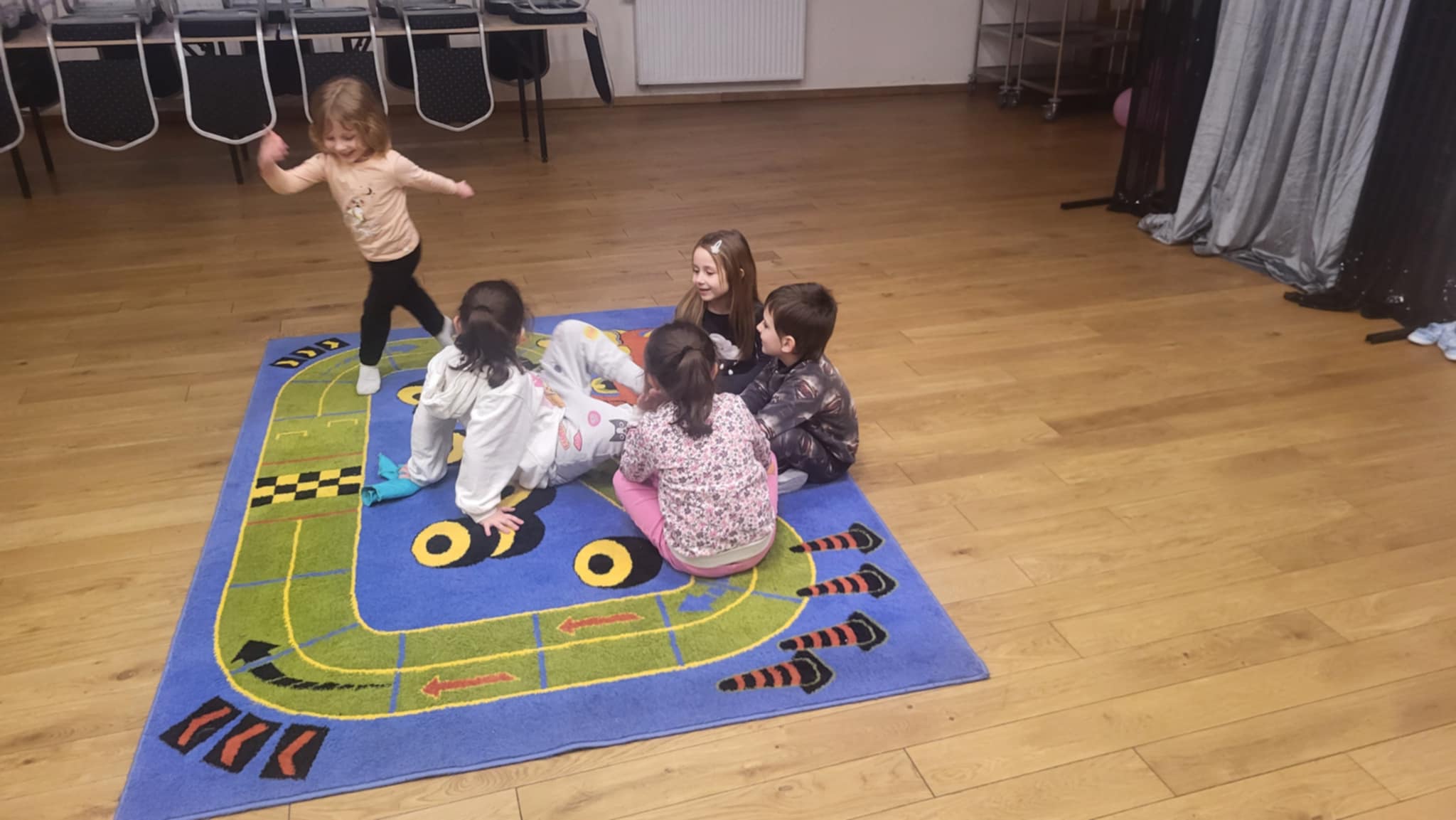 Nie zabrakło również zabaw integracyjnych i ruchowych, które sprzyjały budowaniu pozytywnych relacji w grupie, uczyły współpracy oraz pozwalały dzieciom aktywnie i radośnie spędzić czas.