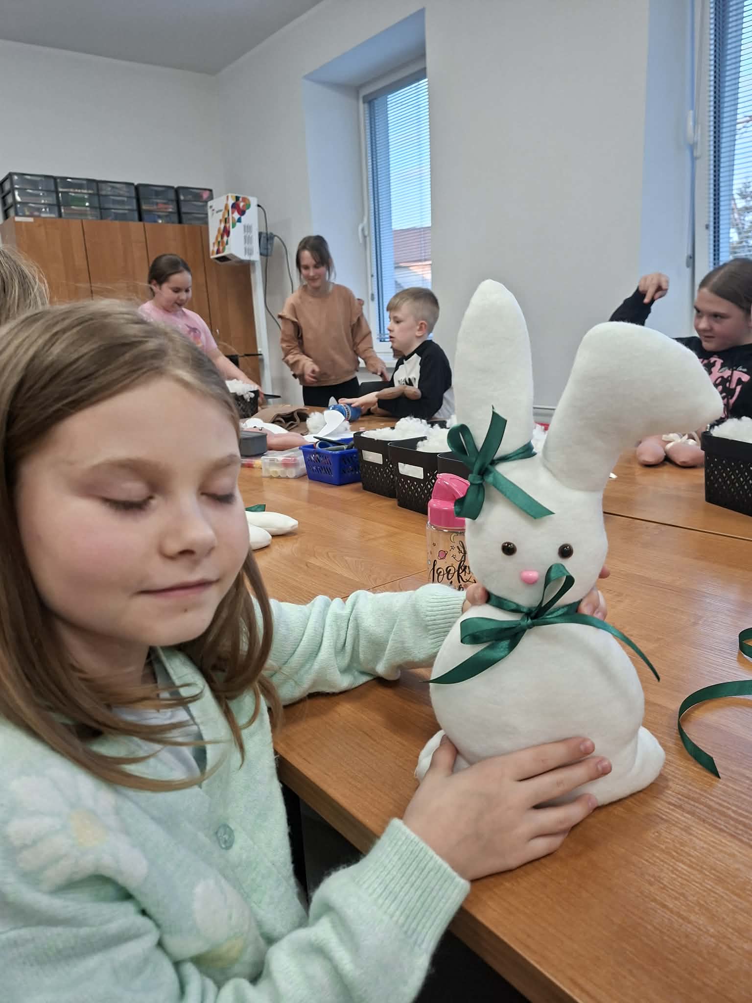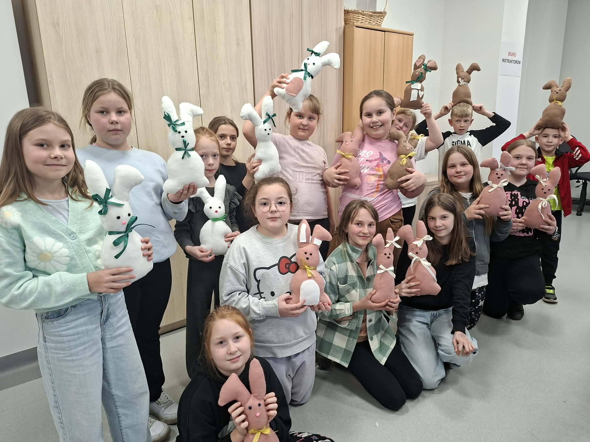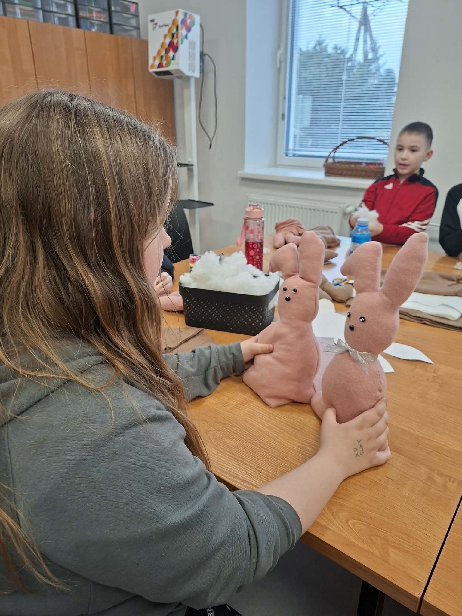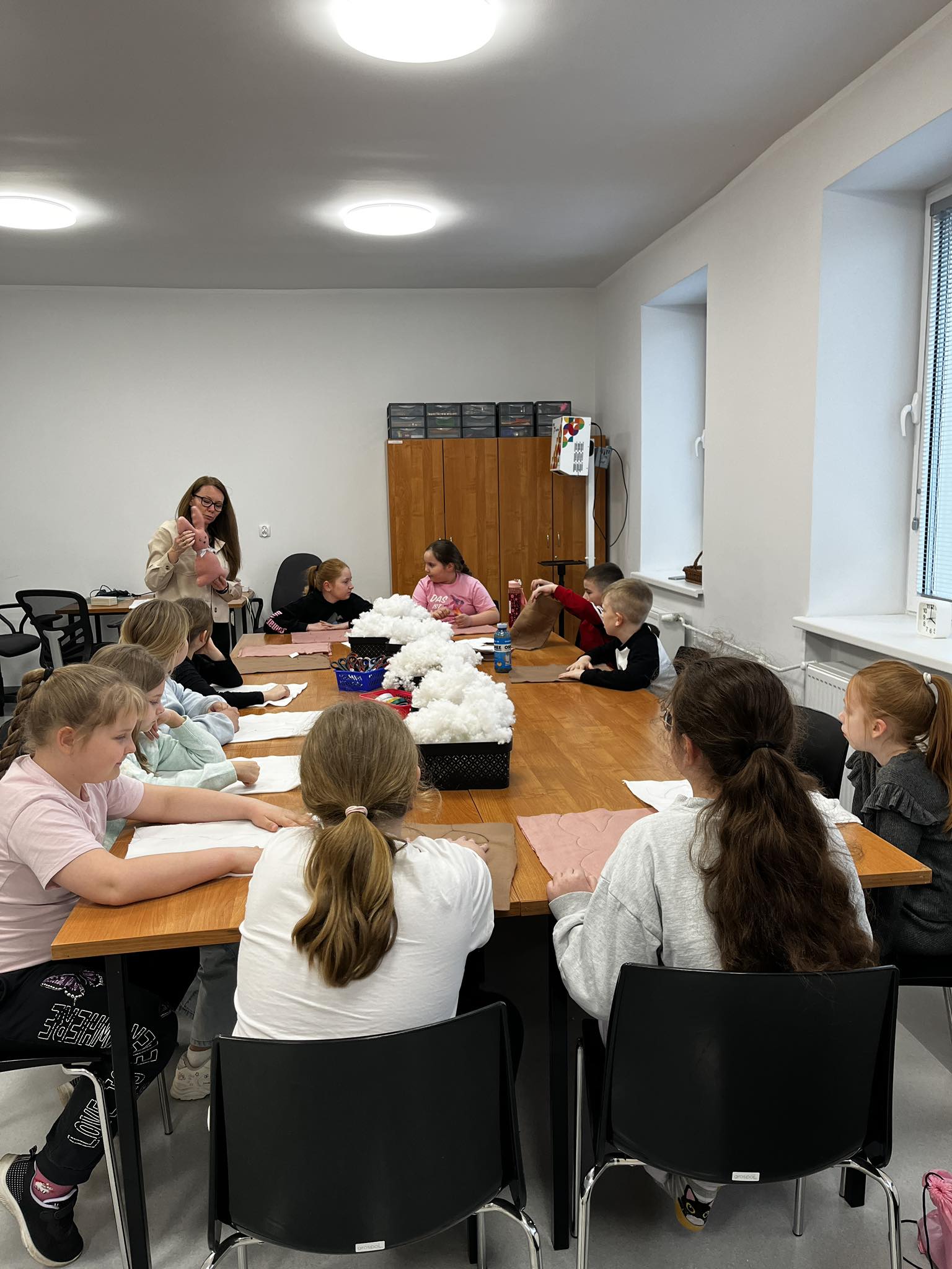 Dzisiejsze wielkanocne warsztaty krawieckie dla dzieci były pełne radości, kreatywności i kolorów. Młodzi uczestnicy z ogromnym zaangażowaniem tworzyli świąteczne urocze zajączki