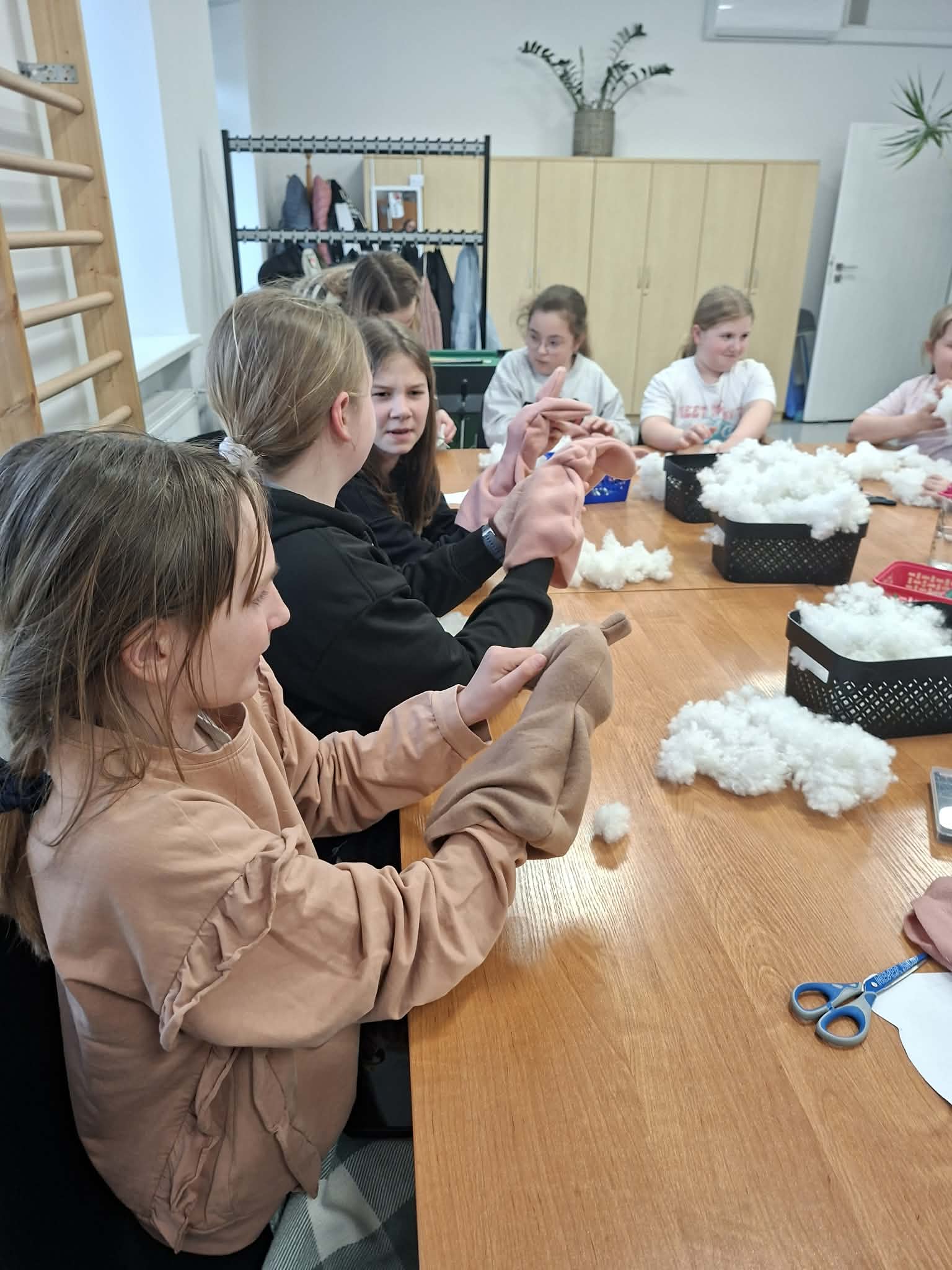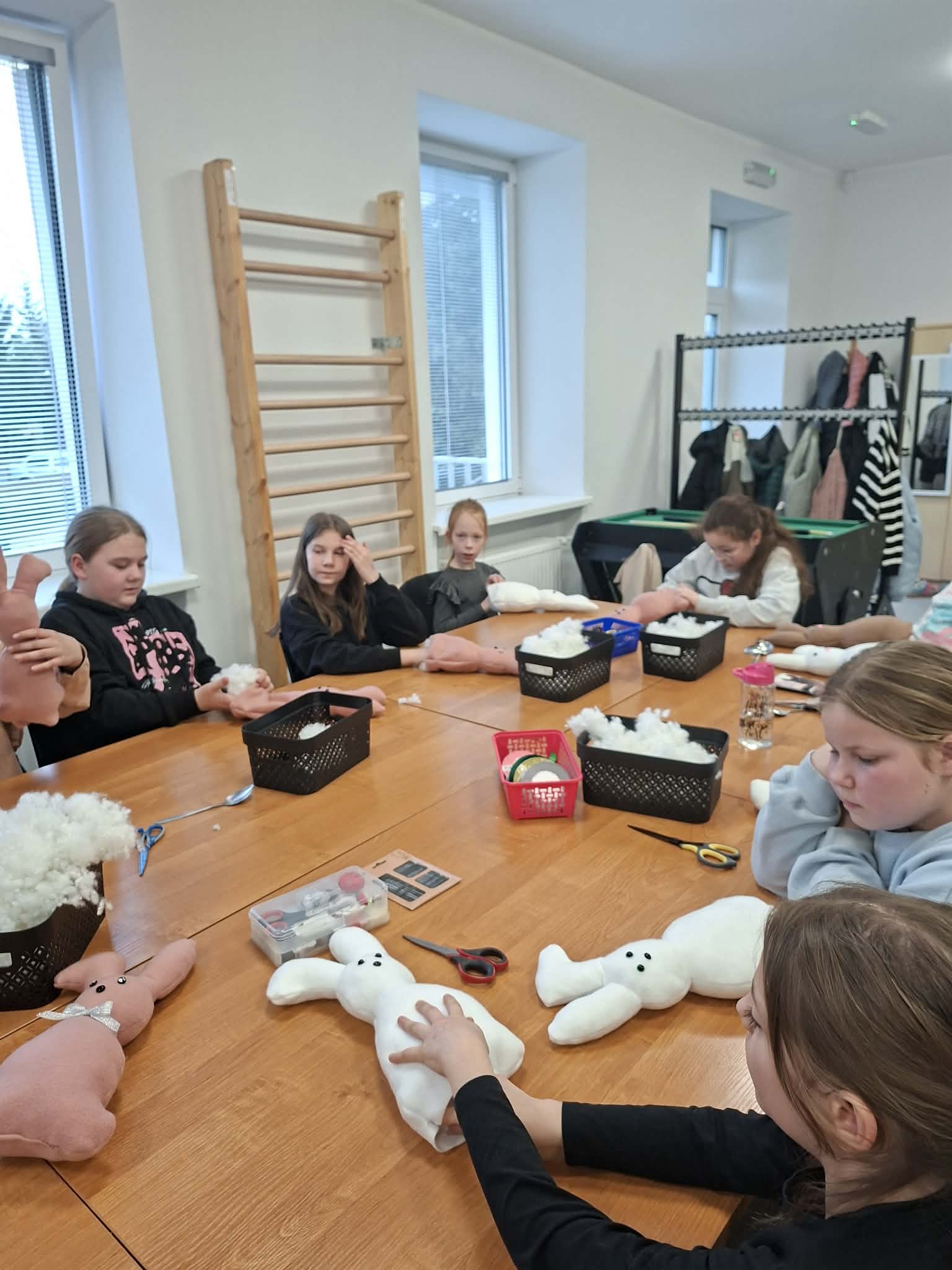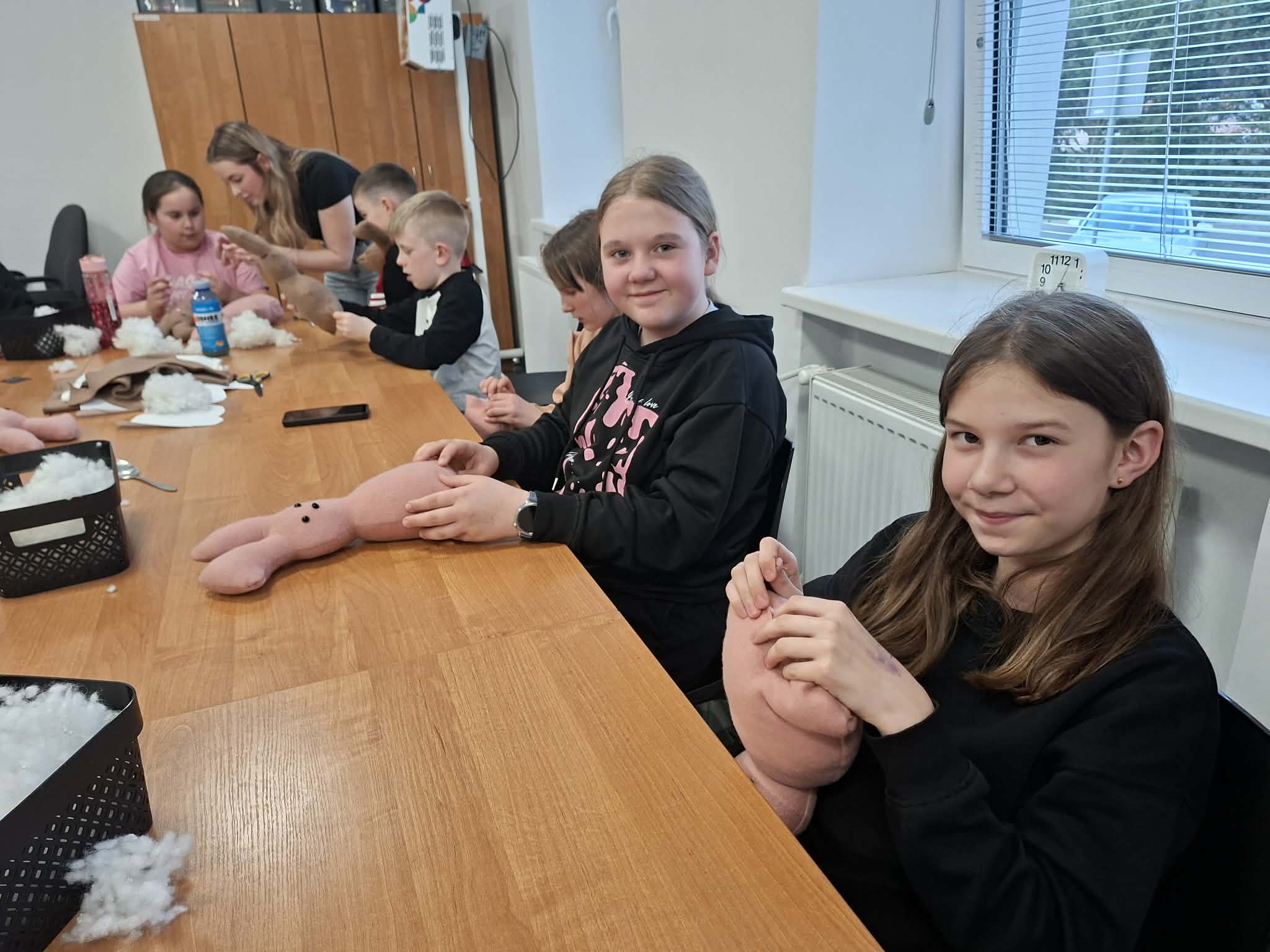 Dzisiejsze wielkanocne warsztaty krawieckie dla dzieci były pełne radości, kreatywności i kolorów. Młodzi uczestnicy z ogromnym zaangażowaniem tworzyli świąteczne urocze zajączki