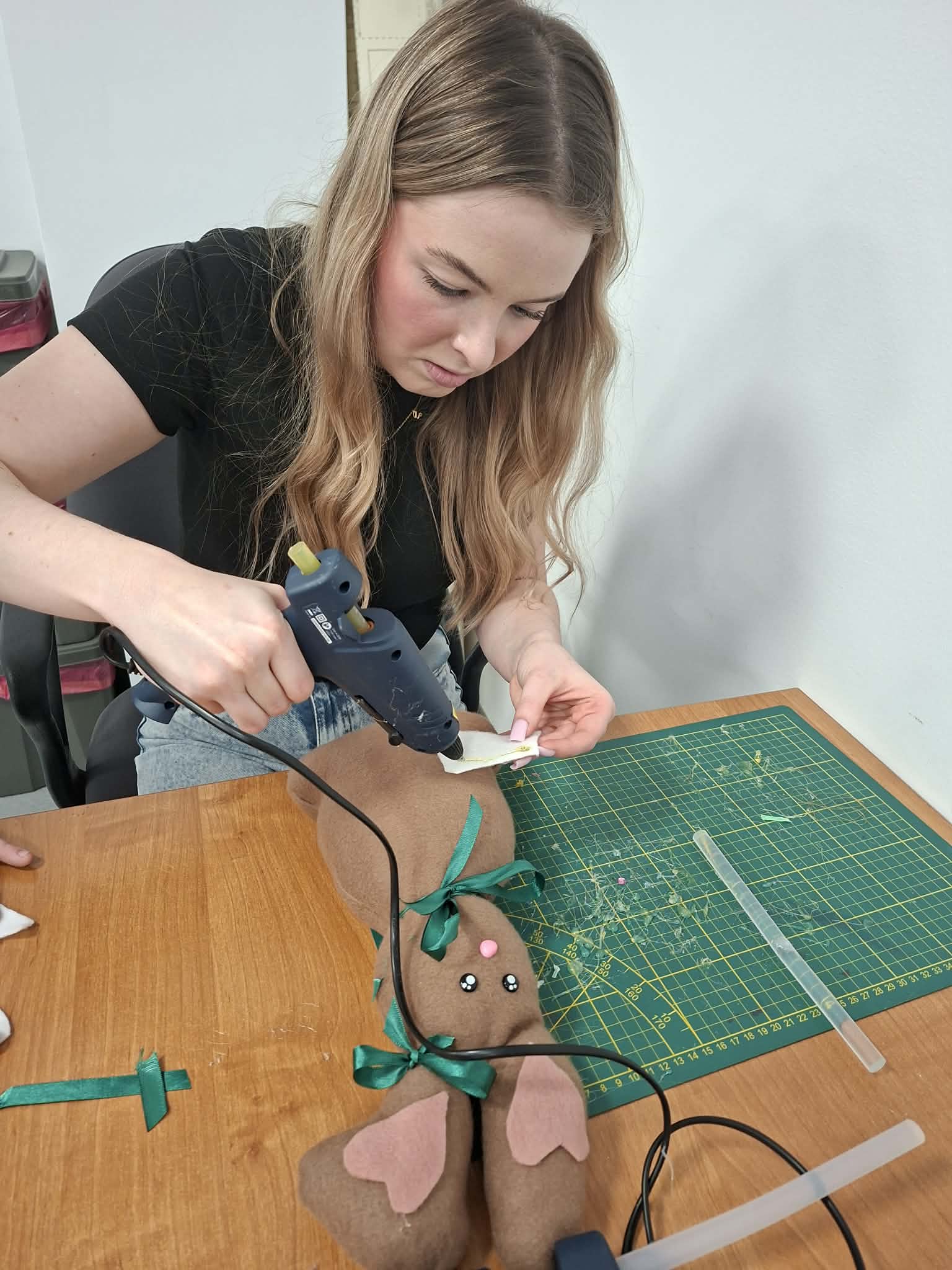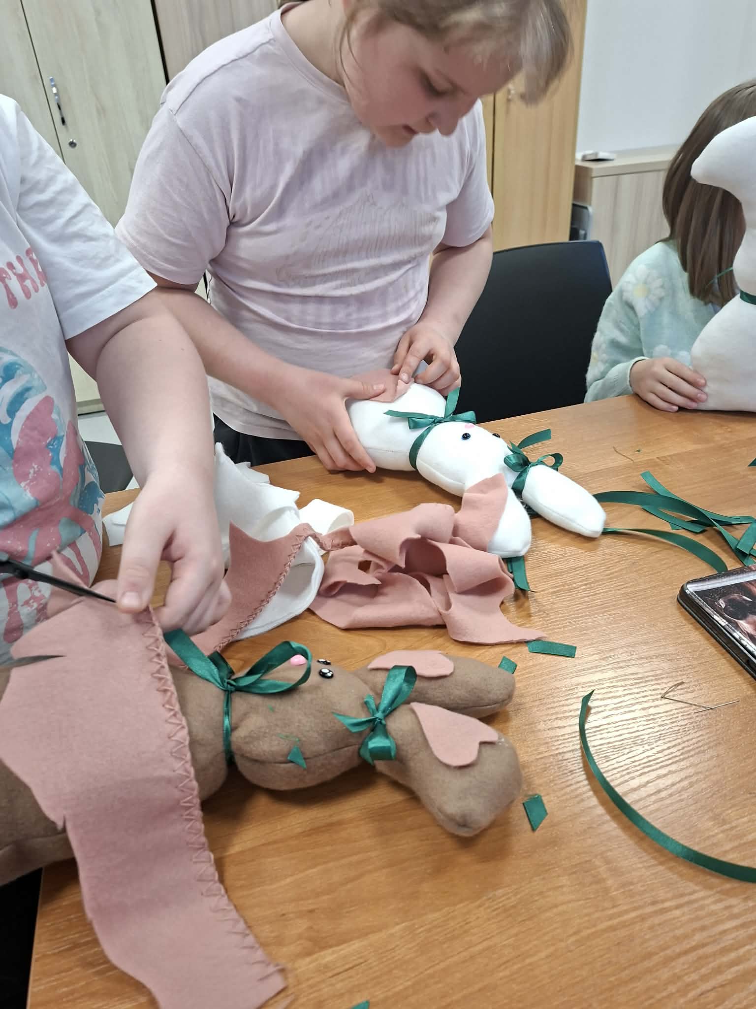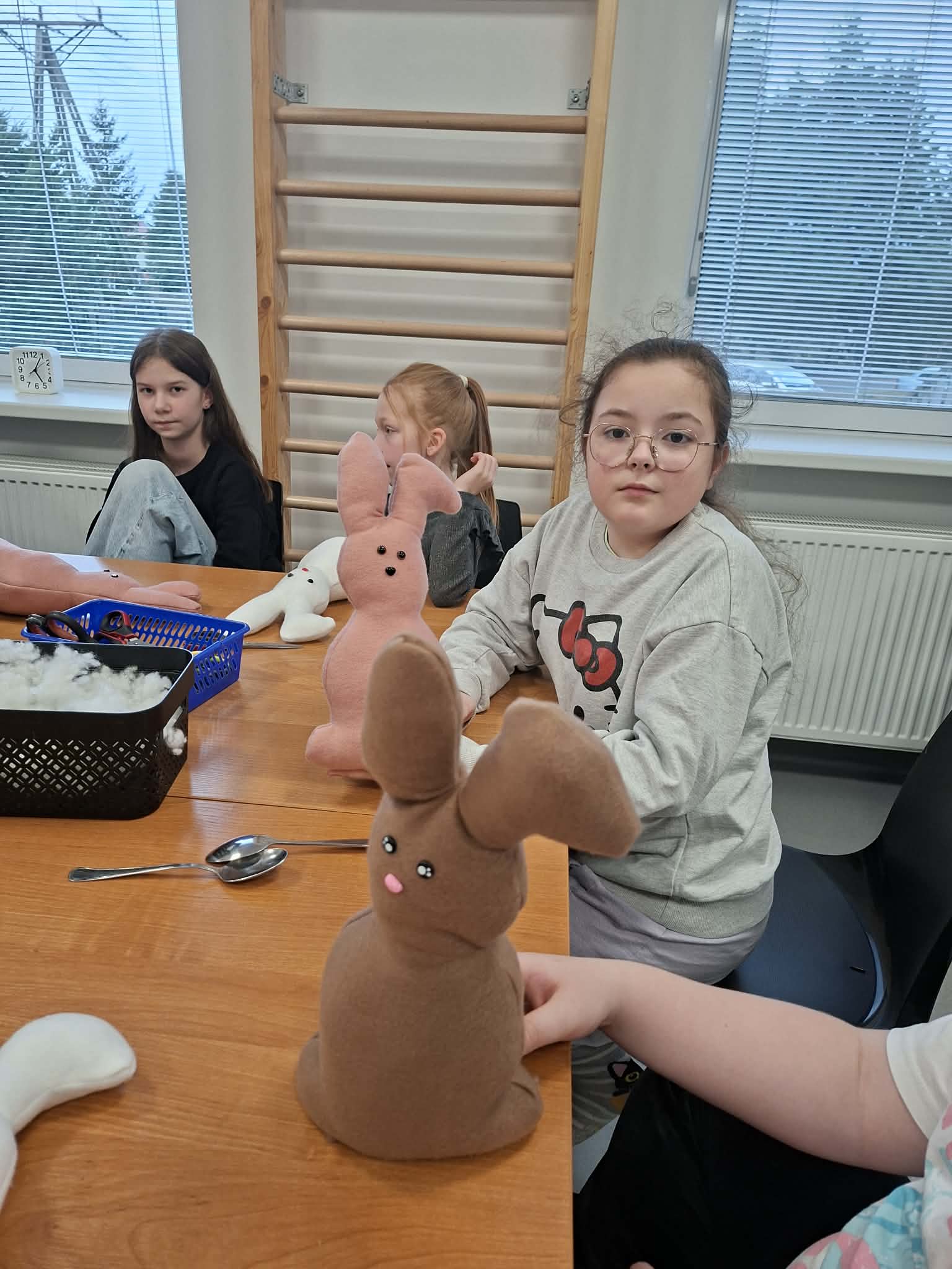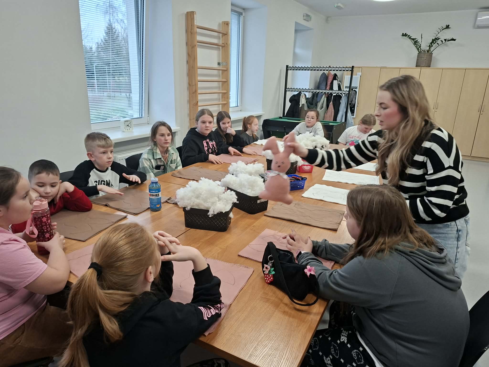 Dzisiejsze wielkanocne warsztaty krawieckie dla dzieci były pełne radości, kreatywności i kolorów. Młodzi uczestnicy z ogromnym zaangażowaniem tworzyli świąteczne urocze zajączki